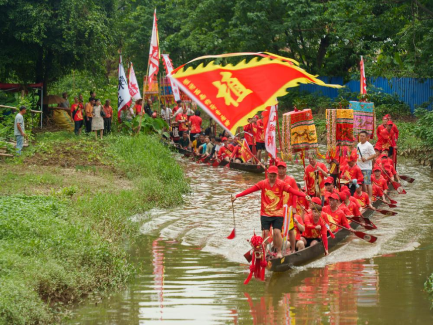 农历五月月朔至初三即5月27日至29日,大龙街石岗东村和石岗西村、傍江东村和傍江西村、新桥村赓续开展龙船景活动。